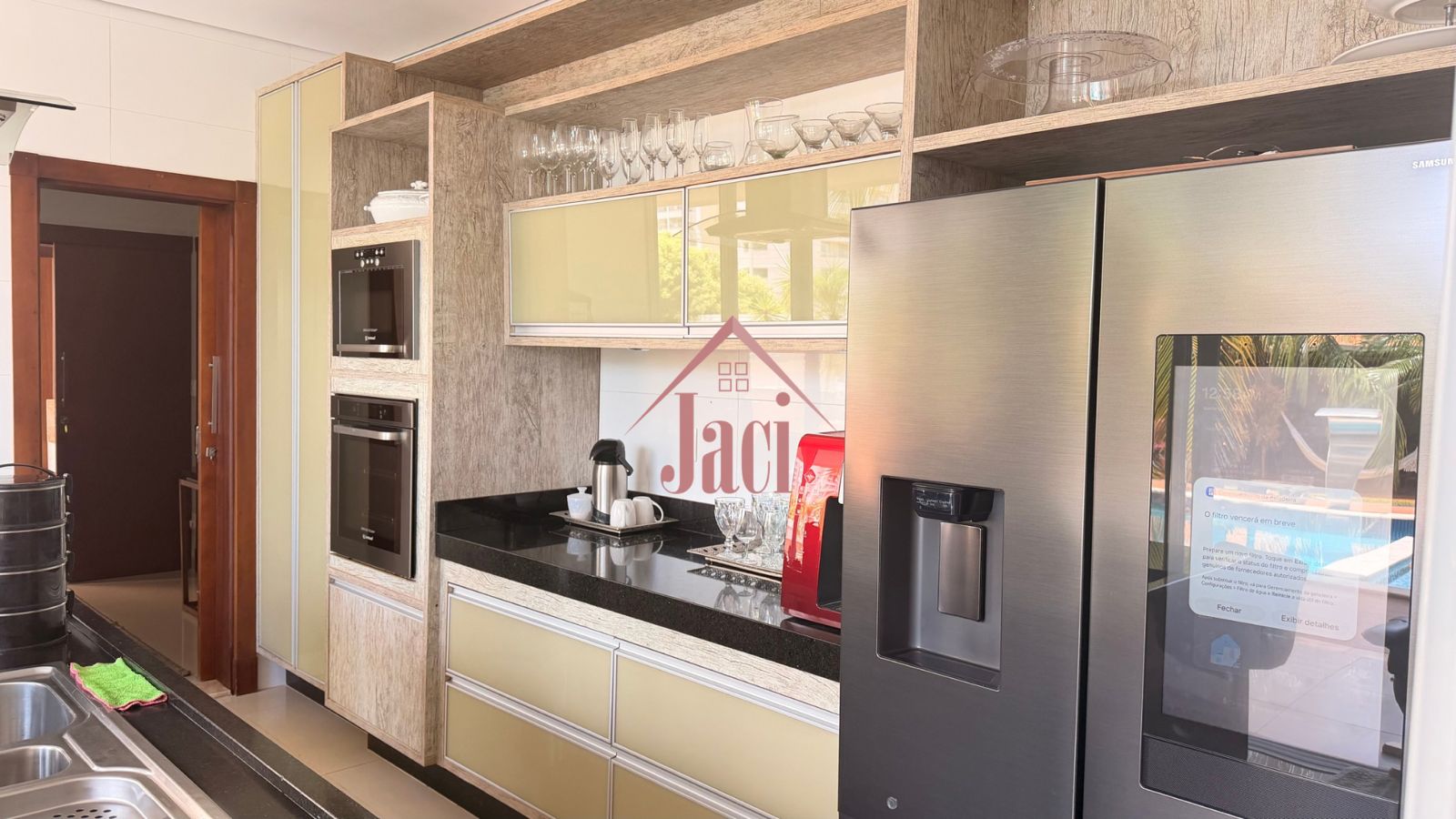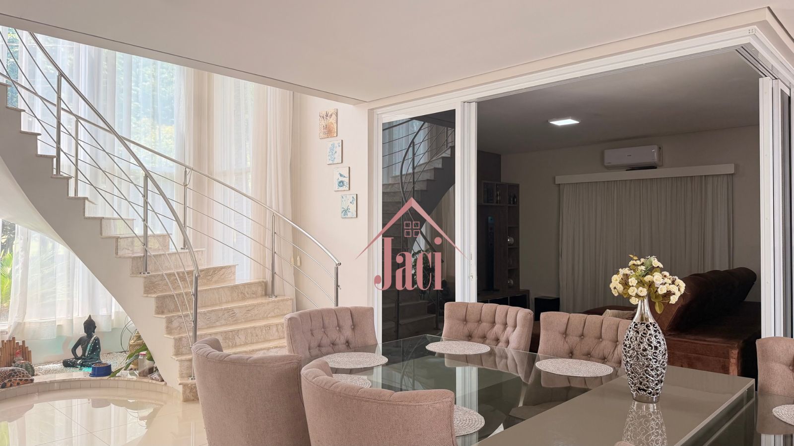 Belíssimo sobrado, no piso térreo sala de Tv, sala de estar, lavabo, cozinha completa, copa, despensa, lavanderia, suíte, varanda, banheiro, deck, piscina iluminada, aquecida, c/ hidromassagem e cascata. No nível superior, sala íntima, 1 suíte com arários, 2 suítes conjugadas com closet, 1 suíte com closet, cozinha de apoio, varanda, Área de Lazer composta por área verde, quiosque rustico, churrasqueira, fogão a lenha, chopeira. A casa é confortável e linda totalmente climatizada, com poço artesiano, energia solar, elevador. Agende sua visita!